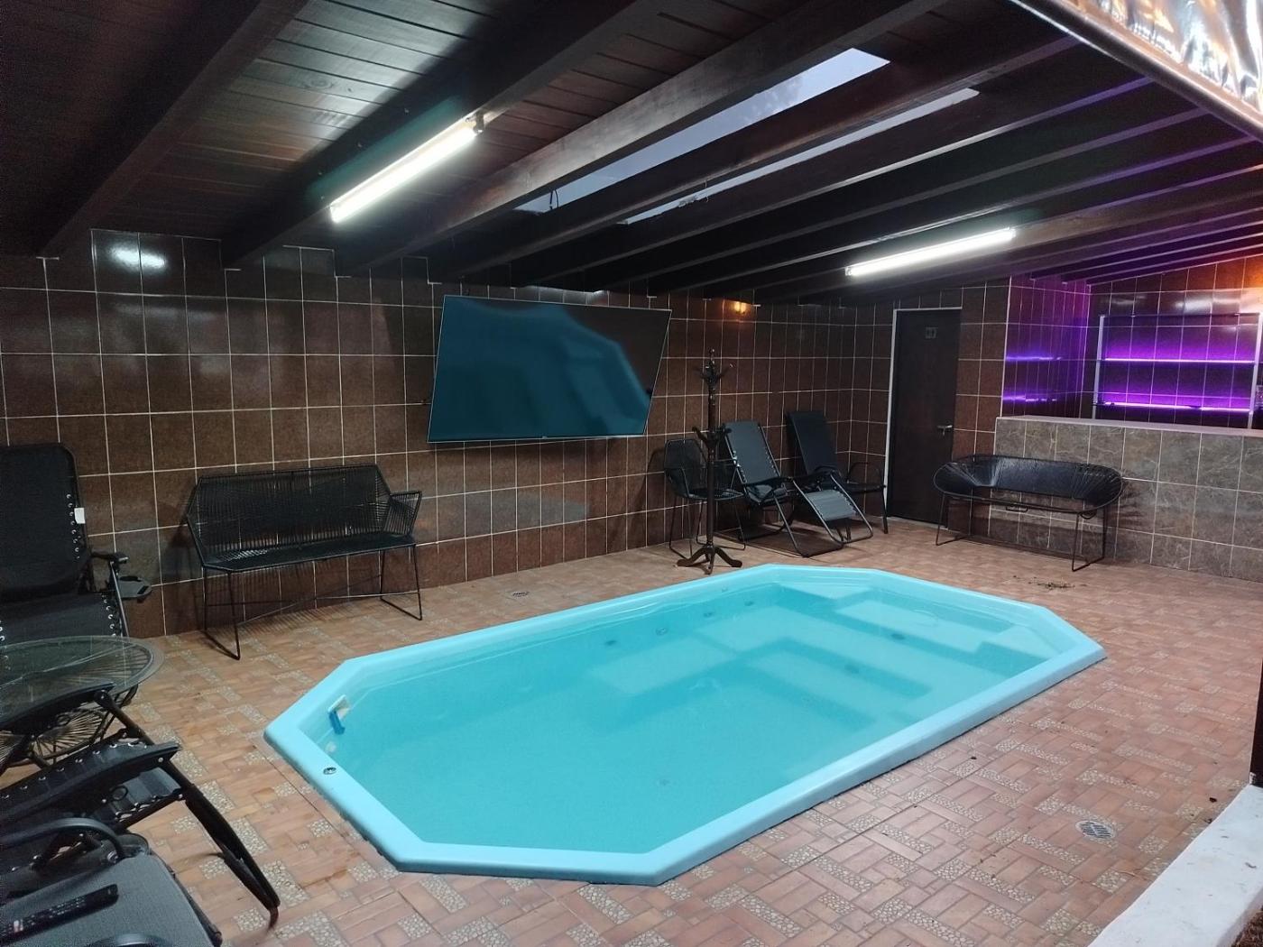 Three-Bedroom House. This luxurious holiday home provides a private pool, a hot tub and a fireplace. This spacious holiday home comes with 1 living room, 1 separate bedroom and 2 bathrooms with a bath and a shower. The well-equipped kitchen has a stovetop, a refrigerator, kitchenware and an oven. Boasting a terrace with lake views, this holiday home also features a washing machine and a flat-screen TV. The unit has 5 beds.